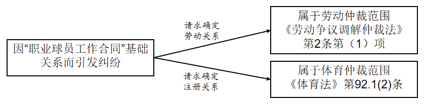 (1)因確認(rèn)身份而引起糾紛,依照請(qǐng)求內(nèi)容不同,分別納入勞動(dòng)仲裁、體育仲裁范圍