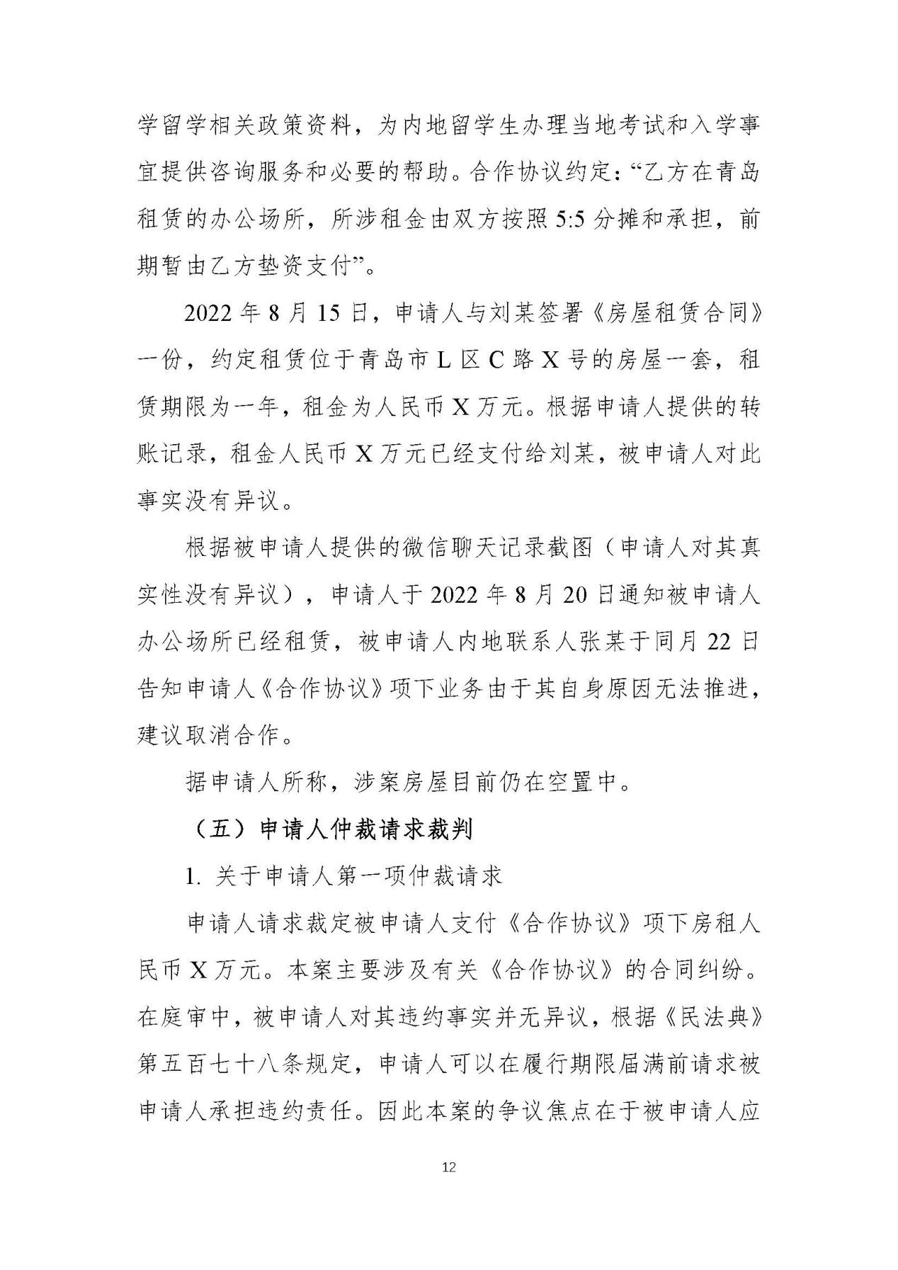 案件涉及一起跨境合作協(xié)議糾紛,申請人為中國內地居民,被申請人為中國香港公司。雙方約定合作開展為內地大學生赴香港研究生留學提供資訊、培訓服務。雙方因合作協(xié)議的履行產生爭議。本案合作協(xié)議“爭議解決”條款明確約定:“因本協(xié)議引起或與本協(xié)議有關的一切爭議,雙方同意以仲裁方式解決,適用《中國海商法協(xié)會臨時仲裁規(guī)則》?!薄爸俨猛ビ梢幻俨脝T組成,仲裁語言為中文,仲裁協(xié)議準據法為香港仲裁法,開庭地點山東青島?!薄氨緟f(xié)議適用《中華人民共和國民法典》為實體法,指定機構為中國海事仲裁委員會或中國海事仲裁委員會青島仲裁中心?!薄爸俨貌脹Q為終局性裁決,雙方同意仲裁裁決在進行脫密處理后,可以由指定機構以適當方式公開?!?/p>