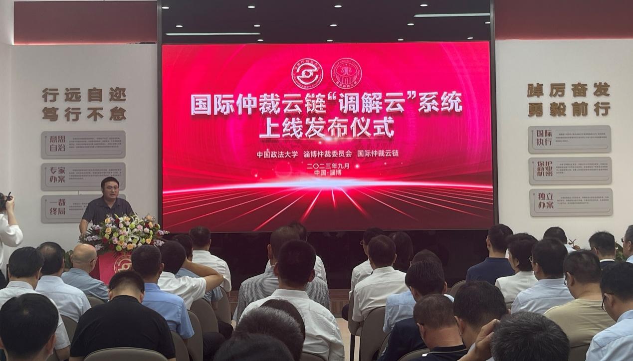 山東省司法廳一級(jí)調(diào)研員李世敏,淄博仲裁辦黨組書(shū)記、主任張公博,淄博仲裁辦黨組成員、副主任閆世學(xué),中國(guó)政法大學(xué)副教授、國(guó)際仲裁云鏈理事會(huì)副理事長(zhǎng)周蔚,中國(guó)政法大學(xué)網(wǎng)絡(luò)安全和信息化辦公室副主任張軼舸,泰杭律師事務(wù)所主任、國(guó)際仲裁云鏈理事會(huì)理事汪政共同為調(diào)解云系統(tǒng)上線揭牌。