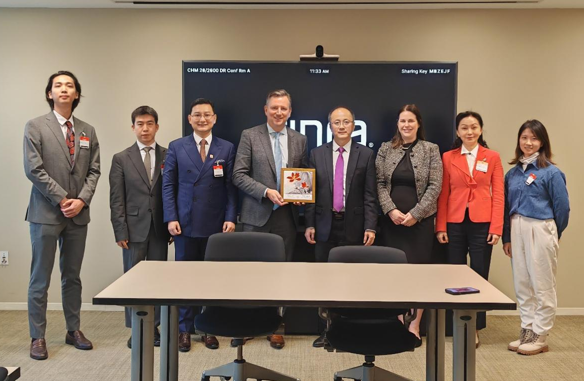 美國金融業(yè)監(jiān)管局爭議解決中心芝加哥區(qū)域辦公室副總監(jiān)摩根·約翰遜、深國仲院長助理兼任中國(深圳)知識產(chǎn)權(quán)仲裁中心主任陳巧梅、深國仲國際合作與發(fā)展處處長兼深國仲江門中心主任黃郭勇等參加業(yè)務(wù)交流。