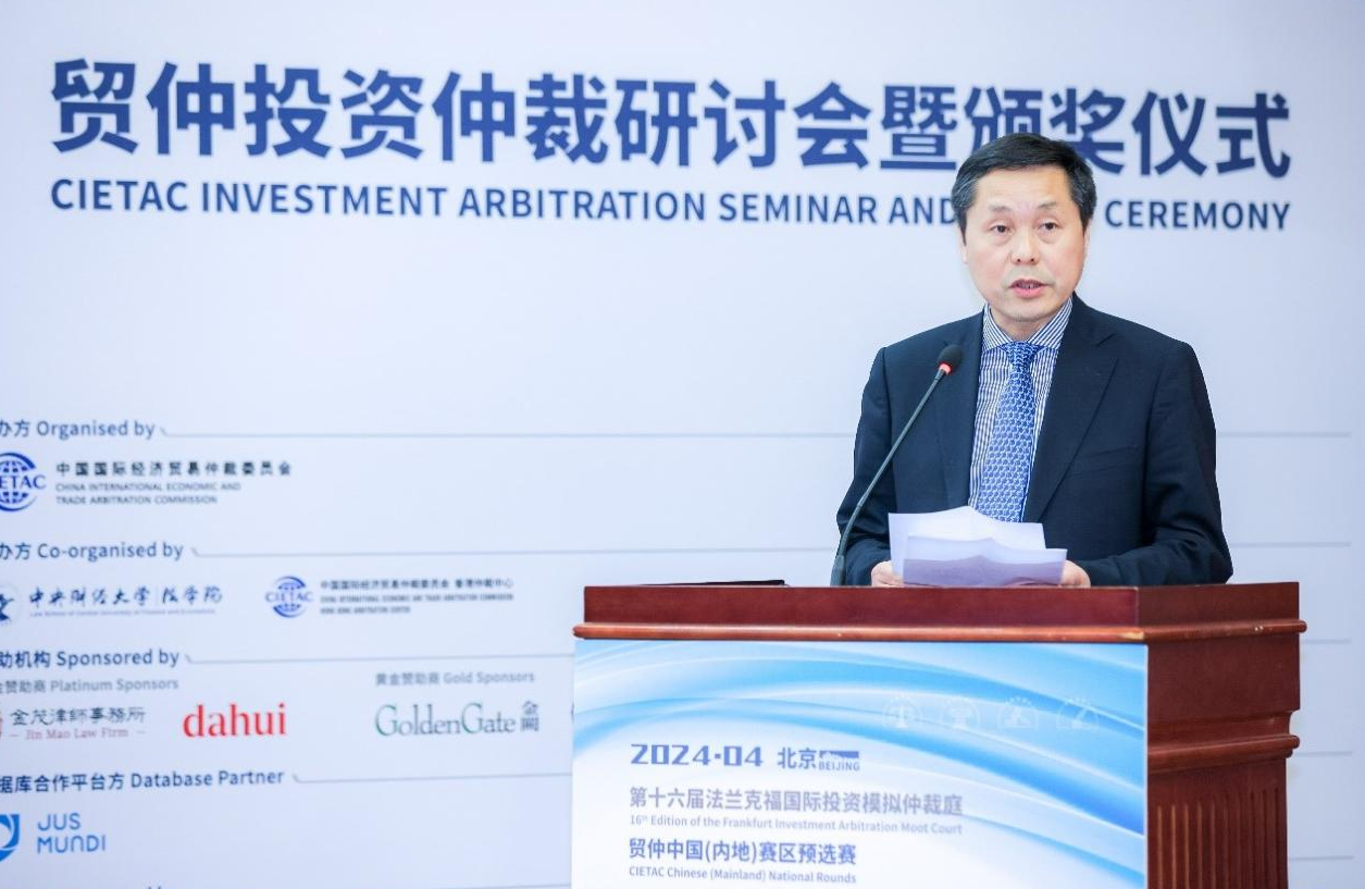 貿(mào)仲副主任兼秘書長(zhǎng)王承杰、香港特別行政區(qū)政府律政司司長(zhǎng)林定國(guó)、聯(lián)合國(guó)貿(mào)法會(huì)亞太區(qū)域中心主任Athita Komindr以及中央財(cái)經(jīng)大學(xué)副校長(zhǎng)栗崢教授致辭并頒獎(jiǎng)。