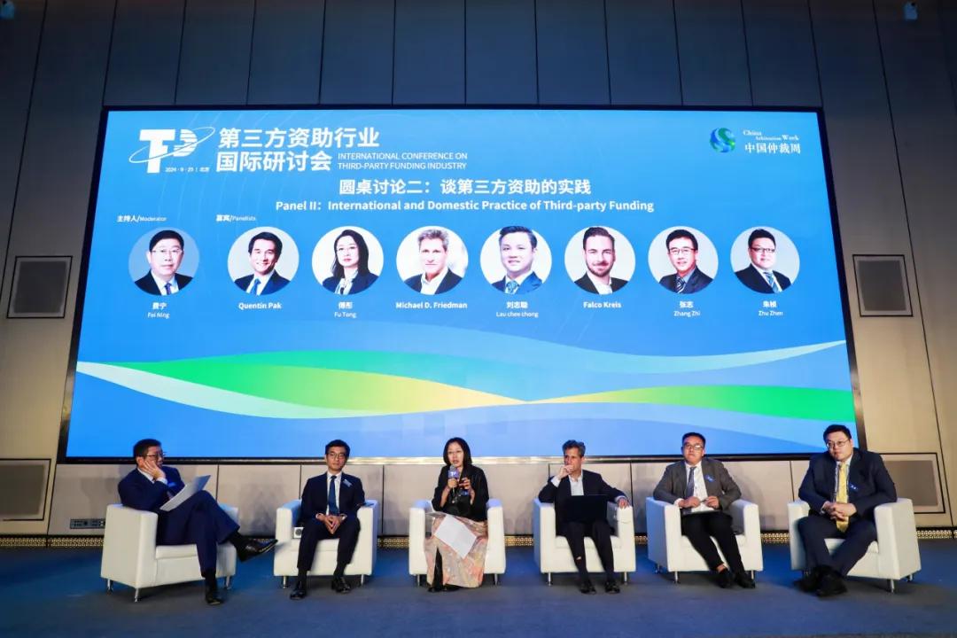 圓桌討論二環(huán)節(jié)中,厚助投資高級(jí)顧問(wèn)費(fèi)寧主持,Burford董事Quentin Pak,厚助投資聯(lián)合創(chuàng)始人兼總裁傅彤,Omni Bridgeway高級(jí)法律顧問(wèn)LAU Chee chong,Hilco lP Merchant Banking總裁Michael D.Friedman,Omni Bridgeway 駐新加坡投資經(jīng)理及高級(jí)法律顧問(wèn)劉志聰,Nivalion高級(jí)投資經(jīng)理、慕尼黑辦公室負(fù)責(zé)人Falco Kreis,鼎頌法務(wù)創(chuàng)新集團(tuán)創(chuàng)始人張志,鄧白氏產(chǎn)品和解決方案負(fù)責(zé)人朱楨參與討論。各位嘉賓圍繞第三方資助境內(nèi)外實(shí)踐的議題,結(jié)合各自機(jī)構(gòu)在不同司法轄區(qū)的實(shí)踐經(jīng)驗(yàn),就案件篩選流程和標(biāo)準(zhǔn)、知識(shí)產(chǎn)權(quán)領(lǐng)域貨幣化與資助、仲裁規(guī)則與資助實(shí)踐的互動(dòng)、企業(yè)出海風(fēng)險(xiǎn)管理等話題進(jìn)行了分享。圓桌嘉賓認(rèn)為當(dāng)前訴訟資助客戶群體和需求呈現(xiàn)多元化態(tài)勢(shì),第三方資助機(jī)構(gòu)提供的產(chǎn)品和服務(wù)方案也在向多樣化發(fā)展。各方對(duì)第三方資助在中國(guó)的發(fā)展持樂(lè)觀態(tài)度,也分享了中國(guó)市場(chǎng)相較于國(guó)際市場(chǎng)的一些特有挑戰(zhàn)。