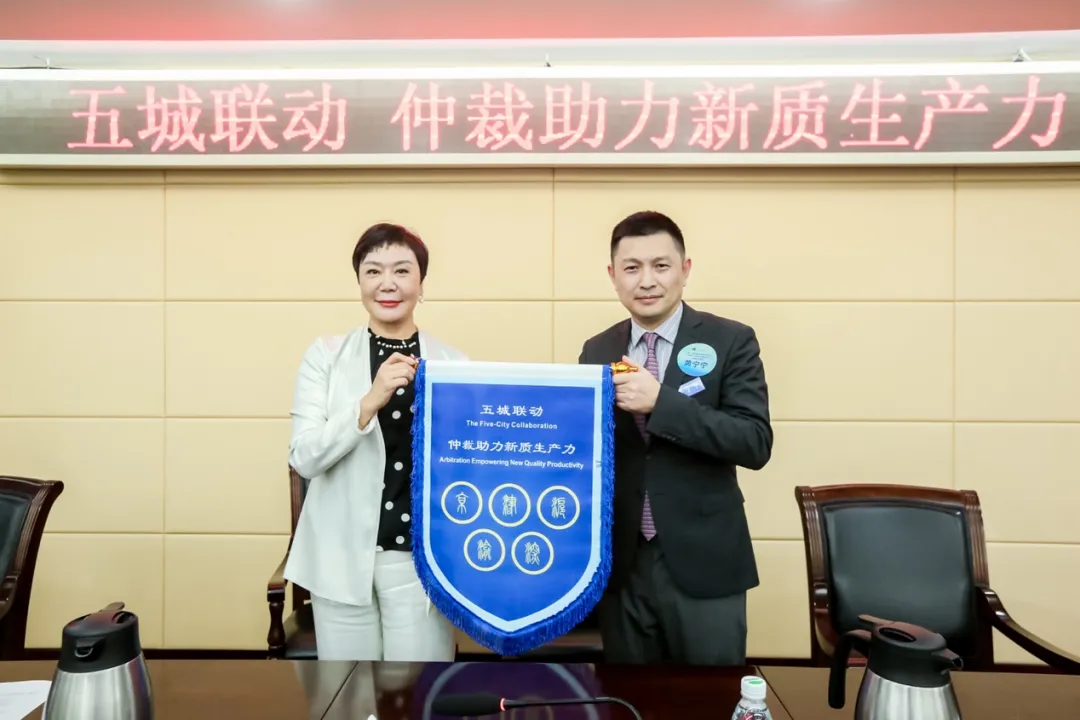 活動最后舉行了仲裁業(yè)務交流會主辦地交接儀式。北京市律師協(xié)會副會長張麗霞將代表此次“五城聯(lián)動,仲裁助力新質(zhì)生產(chǎn)力”活動的旗幟交付給上海市律師協(xié)會副會長黃寧寧。