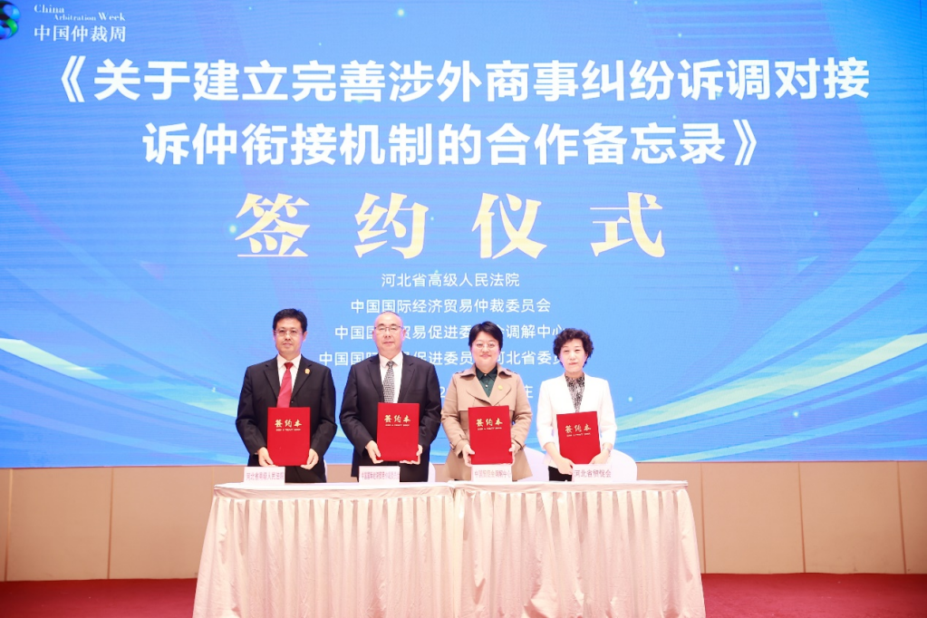 在合作協(xié)議簽署及發(fā)布儀式環(huán)節(jié),貿(mào)仲委與河北省高級(jí)人民法院、中國(guó)國(guó)際貿(mào)易促進(jìn)委員會(huì)調(diào)解中心、中國(guó)國(guó)際貿(mào)易促進(jìn)委員會(huì)河北省委員會(huì)就共建“涉外商事爭(zhēng)議訴調(diào)對(duì)接、訴仲銜接工作機(jī)制”“服務(wù)保障雄安新區(qū)及河北自貿(mào)試驗(yàn)區(qū)建設(shè)機(jī)制”“涉外知識(shí)產(chǎn)權(quán)聯(lián)合保護(hù)機(jī)制”“共同推進(jìn)法治化營(yíng)商環(huán)境建設(shè)機(jī)制”簽署了《合作備忘錄》,意在為河北省引入國(guó)際先進(jìn)仲裁、調(diào)解機(jī)構(gòu)服務(wù),便利當(dāng)事人一站式爭(zhēng)議解決,各方合力,共同服務(wù)保障雄安新區(qū)及河北自貿(mào)試驗(yàn)區(qū)建設(shè),優(yōu)化河北省營(yíng)商環(huán)境。