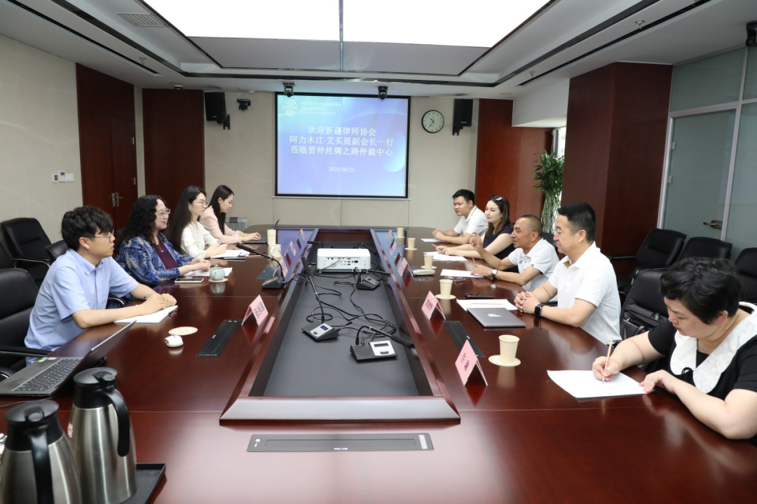 6月20日,新疆維吾爾自治區(qū)律師協(xié)會(huì)(簡(jiǎn)稱“新疆律師協(xié)會(huì)”)副會(huì)長(zhǎng)阿力木江·艾買提一行到訪中國(guó)國(guó)際經(jīng)濟(jì)貿(mào)易仲裁委員會(huì)絲綢之路仲裁中心(簡(jiǎn)稱“貿(mào)仲絲路中心”)。貿(mào)仲絲路中心副秘書(shū)長(zhǎng)蔣紅梅會(huì)見(jiàn)接待,雙方進(jìn)行座談。