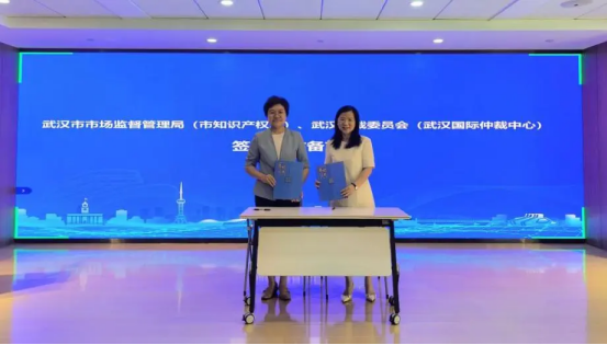 簽約儀式環(huán)節(jié),武漢市市場(chǎng)監(jiān)督管理局(武漢市知識(shí)產(chǎn)權(quán)局)黨組成員、副局長(zhǎng)夏蕾和武漢仲裁委辦黨組書(shū)記、主任羅平分別代表雙方單位簽署合作備忘錄。