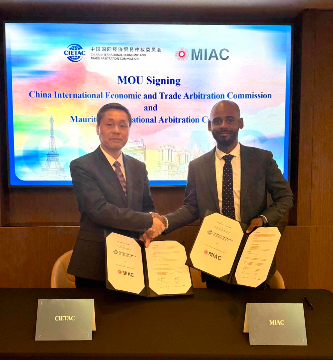 會(huì)議上舉行了合作協(xié)議簽署儀式。在全體與會(huì)代表的見(jiàn)證下,貿(mào)仲與毛里求斯國(guó)際仲裁中心(MIAC)簽署合作協(xié)議。