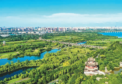 圖一:藍(lán)綠交織的永定河北京豐臺(tái)段。