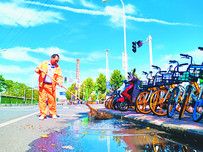 烈日下,“城市美容師”仍然堅(jiān)守崗位,用汗水保障城市干凈整潔。