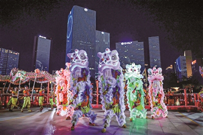消費(fèi)場景方面,城市燈光秀、周末音樂匯及《千燈謠》《幻彩耀燈湖》音樂噴泉水秀等劇目在片區(qū)內(nèi)常態(tài)化展演?!皭偱芄鸪窃匠霾?show出你軌跡”掀起全民打卡熱潮,夜光龍獅薈、千燈湖電光龍舟漂移等活動展現(xiàn)傳統(tǒng)文化魅力迅速“火出圈”,既有品牌,又有熱度。