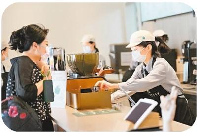 在星巴克西安翠華里手語(yǔ)店,語(yǔ)音識(shí)別系統(tǒng)、雙面點(diǎn)單屏、手寫(xiě)板以及帶編號(hào)的手持菜單等設(shè)施讓點(diǎn)單交流不受語(yǔ)言局限。圖為聽(tīng)障咖啡師李莎(右)為顧客制作咖啡。新華社記者 李一博攝