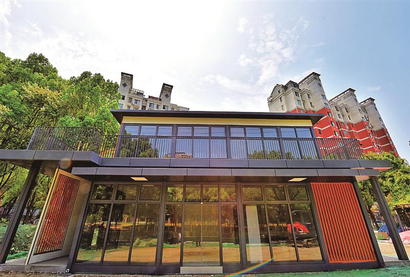 新吳區(qū)住建局相關(guān)負(fù)責(zé)人介紹,城市驛站建筑面積384平方米,是一座多功能的裝配式建筑,其基礎(chǔ)采用混凝土預(yù)制基礎(chǔ)標(biāo)準(zhǔn)生產(chǎn),建筑整體熱浸鍍鋅防腐,內(nèi)外立面全部采用干法施工,主體結(jié)構(gòu)件采用榫卯工藝進(jìn)行裝配,施工現(xiàn)場無焊接處理,構(gòu)件連接緊密,結(jié)構(gòu)輕巧,保證建筑使用壽命。相較于傳統(tǒng)驛站需要3-6個(gè)月的建設(shè)周期,該驛站采用類似“搭積木”裝配式模塊化建設(shè),所有零部件采用工廠標(biāo)準(zhǔn)化生產(chǎn),組裝過程不產(chǎn)生建筑垃圾與揚(yáng)塵,施工周期僅為45天,極大地降低了安裝過程中對周邊環(huán)境、居民生活的影響。