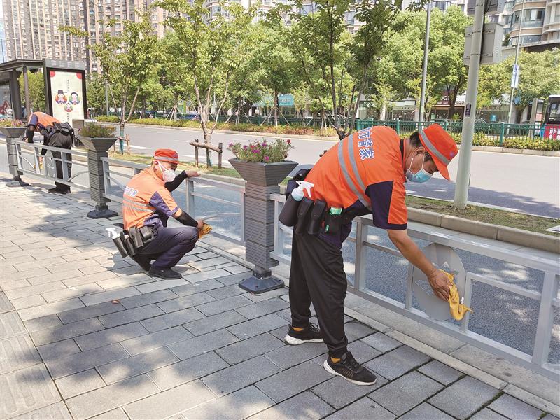 9月7日,在長(zhǎng)江北路沿線的廣場(chǎng)、小游園、公交站臺(tái),隨處可見一些身穿橙色工作服的工作人員在穿梭忙碌,他們是新吳區(qū)首批上崗的“城市管家”。記者獲悉,新吳在全市率先實(shí)現(xiàn)“城市管家”一體化管理全域覆蓋,全區(qū)目前共有800余名“城市管家”,他們統(tǒng)一著裝、規(guī)范作業(yè)。