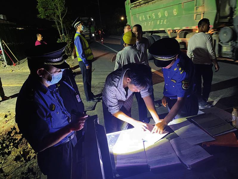 “您好!我們是南寧市城管支隊(duì)執(zhí)法人員,檢查中發(fā)現(xiàn)你們工地存在車輛出入口未設(shè)置沖洗設(shè)施等問題,現(xiàn)要求你們及時(shí)改正?!苯冢枪軋?zhí)法隊(duì)員合理規(guī)劃每日巡查線路,實(shí)行“白+黑”出勤模式,全天候全覆蓋巡查,加大對重點(diǎn)區(qū)域、路段和時(shí)段的巡查力度,對做得不到位的建筑工地、消納場立即下達(dá)整改通知書,限期對存在問題進(jìn)行整改,通過“常巡查、常復(fù)查、常督促”的執(zhí)法方式,將揚(yáng)塵污染等問題解決在萌芽狀態(tài),持續(xù)擦亮“南寧藍(lán)”這張城市名片。