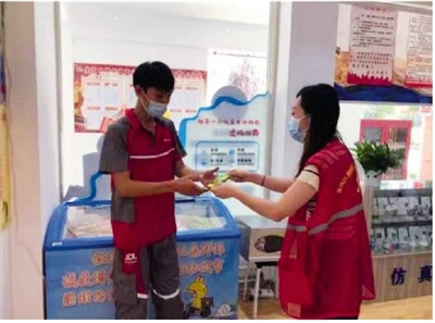 藍山名邸社區(qū)的新就業(yè)群體服務(wù)驛站為快遞員提供免費冷飲