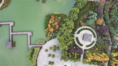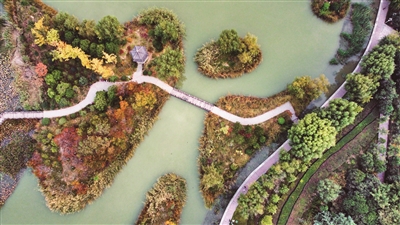 初冬時節(jié),興洛湖公園依舊景色如畫。