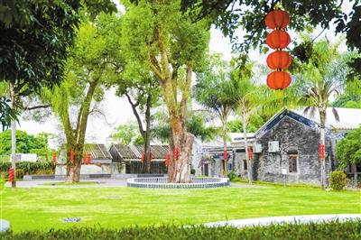 環(huán)境整治改造后的香樟園環(huán)境清幽雅致,功能齊全多樣:樹(shù)冠形成宛如穹頂?shù)摹罢陉?yáng)傘”,下方便是圓形樹(shù)池座椅,可供居民和游客休憩、觀賞,往上橫街方向望去,一大片開(kāi)闊草坪讓清新綠意盡收眼底。園內(nèi)還有一塊半圓扇形硬質(zhì)鋪裝小舞臺(tái),地磚雕刻有會(huì)同古村標(biāo)志性的兩座閘門、三座祠堂和兩棟碉樓,將古村文化底蘊(yùn)藏于細(xì)枝末節(jié)中。在這里可舉行小型音樂(lè)演奏會(huì)、朗誦比賽、村民議事等活動(dòng),豐富村民的精神文化生活。