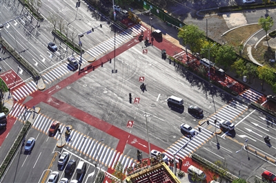 “過馬路不再卡殼,大膽放心往前走,這種路口對(duì)行人太友好了!”在附近銀行上班的王宇感慨道,路口“人車分流”,通行效率提升,行人也更加安全。