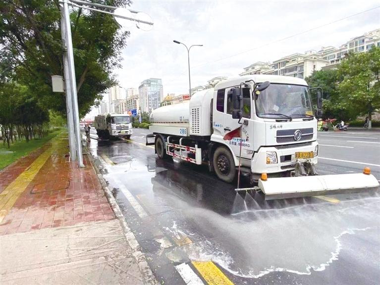 為持續(xù)鞏固全國文明城市創(chuàng)建成果,提升城市“顏值”,迎接即將到來的2023蘭州馬拉松,6月7日,蘭州市開展鐵路兩旁、公路兩側(cè)、河道兩岸等環(huán)境綜合整治工作,市城管委統(tǒng)籌力量、精心組織,用智能化手段持續(xù)開展以賽道為重點的市容環(huán)境綜合整治和氛圍營造工作。圍繞打造精致凈美城市、營造“一流”賽道,城管、林業(yè)、住建、工信、蘭州黃河風情線大景區(qū)等部門按照職能重點,對賽道全線的環(huán)境衛(wèi)生、市容秩序、綠地空株補栽、苗木整形修剪、綠雕盆景修復、樓頂樓宇“凈空”、建筑物外觀立面、基礎(chǔ)設(shè)施、市政設(shè)施等方面開展無死角整治。圖為安寧區(qū)環(huán)保部門清潔路面。(記者 張旭永)