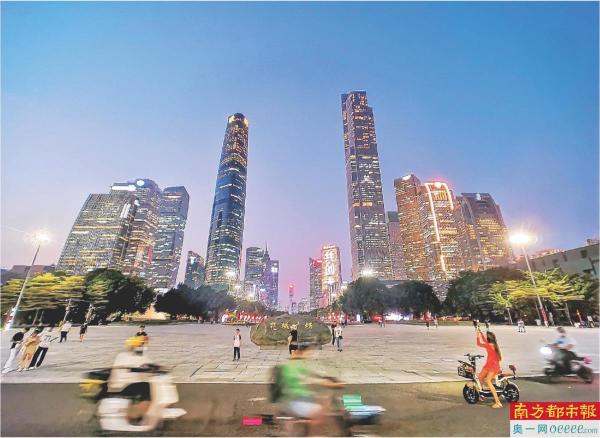 廣州各區(qū)中心城區(qū)公共休閑場(chǎng)地人群密集,電動(dòng)自行車等具有動(dòng)力裝置的滑行工具不規(guī)范使用的現(xiàn)象日益增多。圖是華燈初上的花城廣場(chǎng)。陳健明 攝