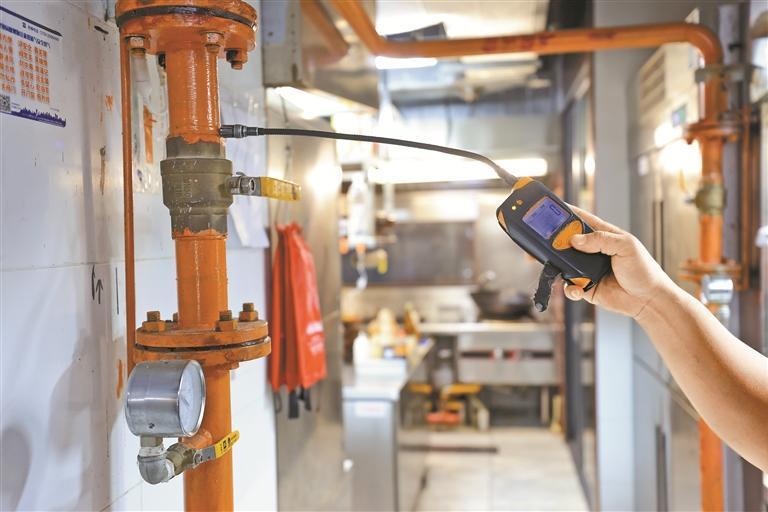 “檢查的時候,我們主要看看燃氣管道、燃氣設備、用氣設備及附屬設施等是否腐蝕損壞,再用燃氣泄漏檢測儀進行泄漏檢測。”盧佑發(fā)解釋。