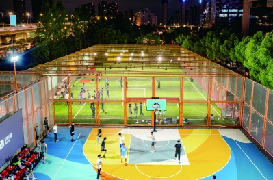 今夏,西城·夜未央運動街區(qū)的燈光球場上,不少上班族結束一天的工作后來此運動休閑。記者 段仁虎 攝