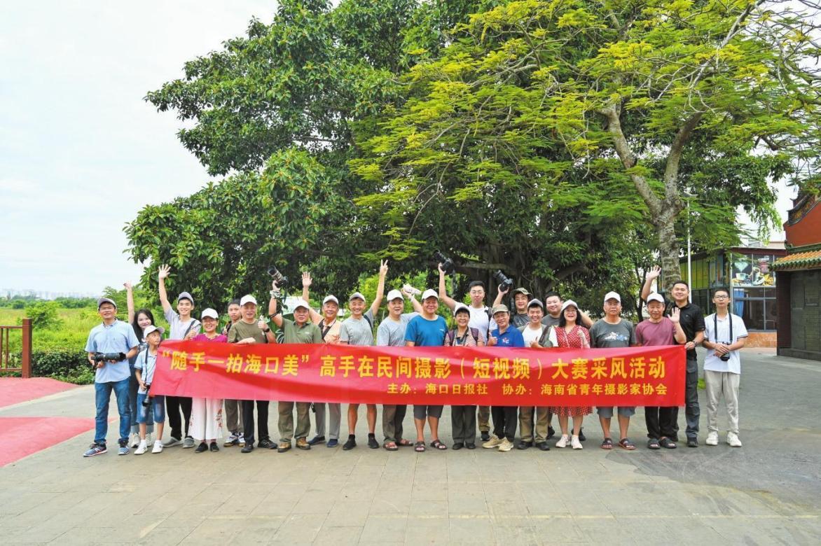參加“隨手一拍海口美”攝影大賽采風活動的攝影家在江東新區(qū)仲愷村合影。 記者 石中華 攝