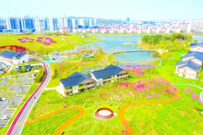 2020年,江北新區(qū)圍繞長(zhǎng)江大保護(hù)、水環(huán)境提升的建設(shè)原則,對(duì)原有湖區(qū)進(jìn)行清淤和沖洗,并通過(guò)“拆、清、治、建、擴(kuò)、引、修”等措施,拆除城中村、清理各類(lèi)垃圾、種植水生植物……從而徹底改善了湖區(qū)水質(zhì),打造富有特色、多樣化、親水性的公園景觀水系。2021年,桃湖公園正式對(duì)外迎客,新栽種的75個(gè)桃樹(shù)品種,讓這里成為南京最大的桃花觀賞基地,搭配原有植物,桃湖公園隨處可見(jiàn)喬木、灌木、草坪,到處都是大自然的氣息。如今,桃湖公園已成為當(dāng)?shù)鼐用裨诩议T(mén)口休閑游玩、鍛煉身體的一處絕佳場(chǎng)所。