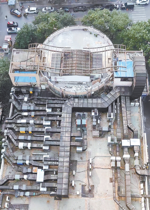 排煙管道、空調(diào)室外機(jī)……改造前,各類(lèi)與餐飲企業(yè)相關(guān)的設(shè)備設(shè)施在百環(huán)家園18號(hào)樓西側(cè)商務(wù)小樓的樓頂散亂排布。
