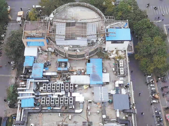 11月30日,記者來(lái)到百環(huán)家園18號(hào)樓,從居民樓向西俯瞰,商務(wù)小樓上雜亂的管道和設(shè)備排布已經(jīng)有了明顯改觀。