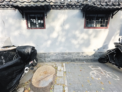 11月,永恒胡同11號(hào)院門口只剩下白蠟樹的樹樁。新京報(bào)記者 慕宏舉 攝