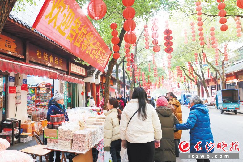 1月28日,瀏陽市淮川街道歷史文化街區(qū)——嗣同路上洋溢著濃濃的新春氣息,前來置辦年貨的市民絡(luò)繹不絕。記者 顏開云 攝