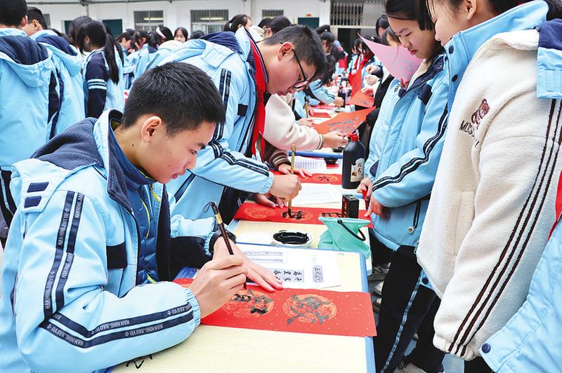 春聯(lián)寓意著人們對美好生活的向往和祝福,既是一種傳統(tǒng)文化的表達,也是一種節(jié)日氛圍的營造,讓人們在新的一年里充滿喜悅和希望。連日來,南寧市各中小學(xué)利用寒假開展形式多樣的活動,組織師生或走上街頭參加志愿服務(wù)活動,為社區(qū)群眾送上新春的祝福,或在家寫春聯(lián)和“?!弊郑瑸榧磳砼R的新春佳節(jié)增添濃濃的喜慶氛圍。