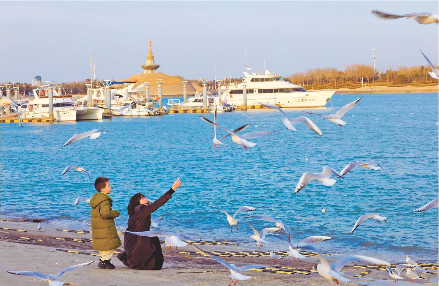 近日,在日照世帆賽基地海邊,成群結(jié)隊的紅嘴鷗飛舞游弋,吸引了大批市民和游客前來拍照打卡。