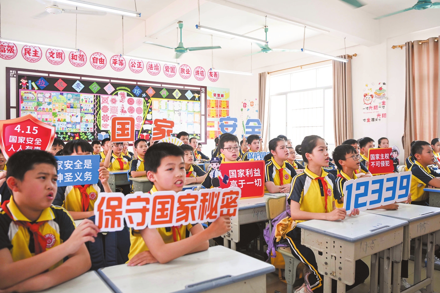 4月15日,在廣西興業(yè)縣一所小學(xué)內(nèi),學(xué)生們在課堂上學(xué)習國家安全相關(guān)的知識。記者 曹祎銘 攝