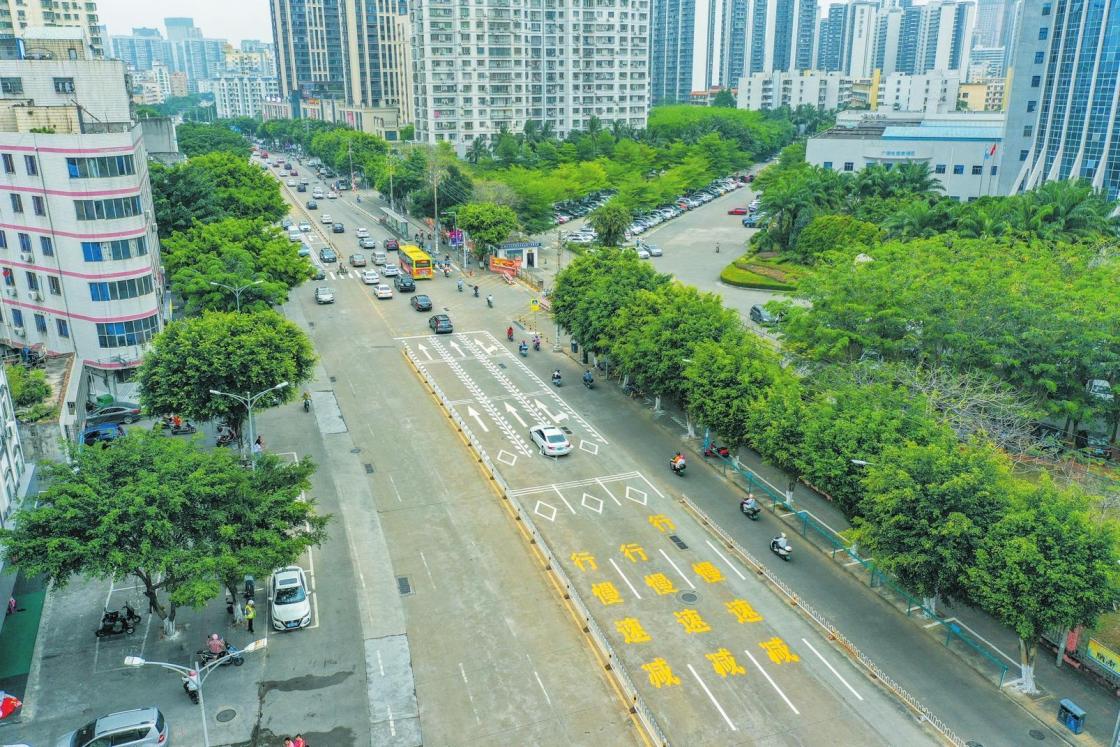 采訪中,海口交警提示,新增的道路標(biāo)線不影響機(jī)動(dòng)車變道,機(jī)動(dòng)車變道仍根據(jù)道路虛實(shí)線規(guī)則。(記者 黎越)