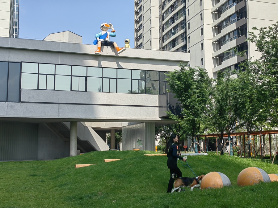 寵物友好社區(qū)的建筑物上也有萌寵模型。