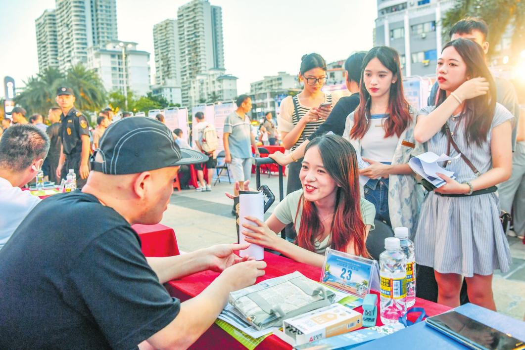 今年來,??谑懈骷壢松绮块T先后在高興里、海甸城、吾悅廣場、友誼陽光城等地舉辦招聘“夜市”,利用商圈夜間人流量大、氛圍輕松等特點,引導用工企業(yè)把崗位“擺出來”,助力求職人才把工作“逛到手”。