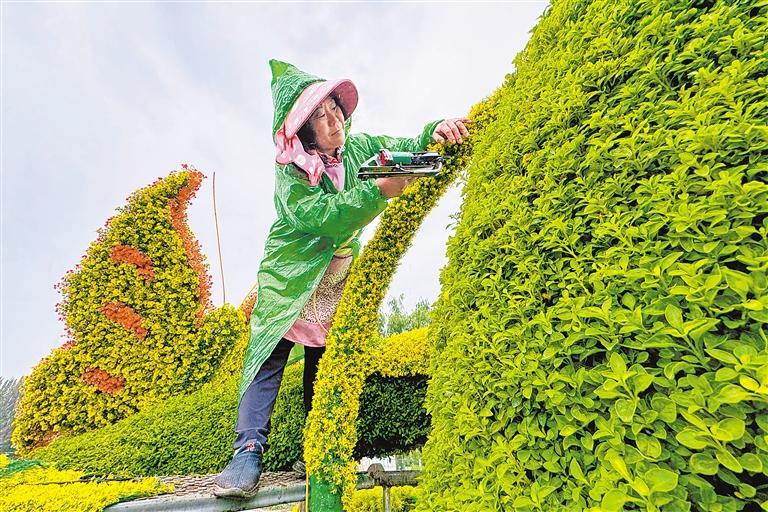 9月9日,銀川市綠化養(yǎng)護(hù)中心花卉基地,工作人員制作一座座造型獨(dú)特的綠雕。中秋、國(guó)慶“雙節(jié)”將至,銀川市園林部門(mén)將在城市主要干道、廣場(chǎng)公園展擺120萬(wàn)盆鮮花,這一抹抹亮色將為城市帶來(lái)無(wú)限活力和濃郁的節(jié)日氛圍。 記者 馬楠 王洋 攝