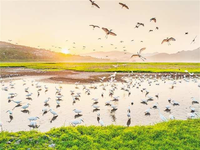 9月7日,重慶市開州區(qū)漢豐湖國家濕地公園,優(yōu)美的生態(tài)環(huán)境,吸引了眾多鷺鳥來此覓食、追逐、嬉戲。