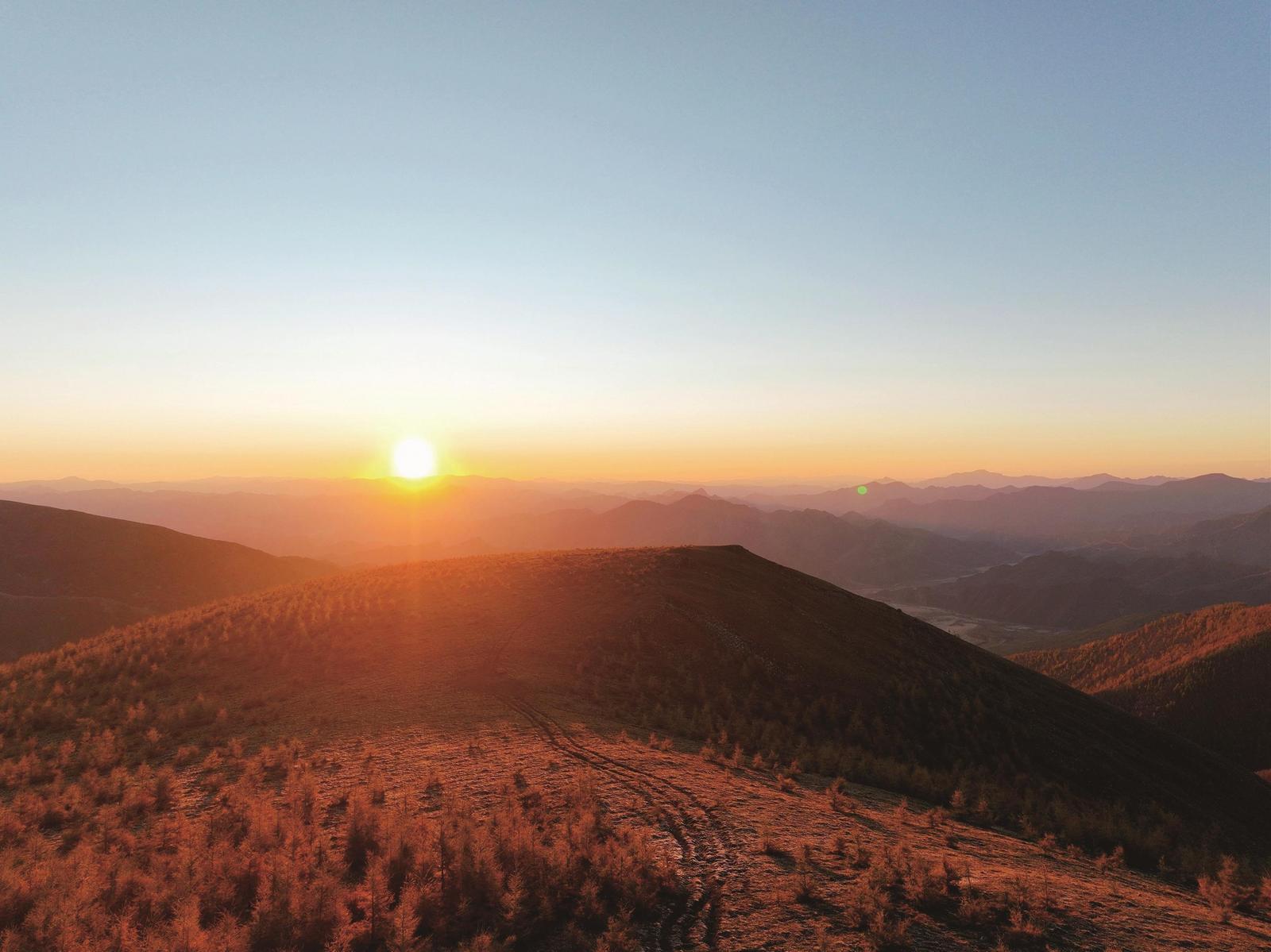 10月7日在河北省承德市豐寧滿族自治縣拍攝的清晨景色(無(wú)人機(jī)照片)。