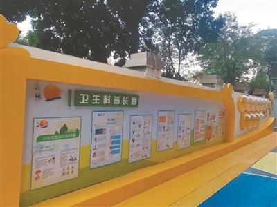 其中,新隆沙社區(qū)長者和兒童居民較多,社區(qū)內(nèi)開放式小廣場常有居民帶小朋友散步玩樂。在本輪改造中,新隆沙社區(qū)特別加入“健康社區(qū)”和“友好兒童”主題。社區(qū)利用轄內(nèi)小廣場側(cè)邊的公用圍墻,打造成健康知識科普長廊,以期刊的形式定期更新,內(nèi)容涵蓋公共衛(wèi)生、心理健康、應(yīng)急救助、法律法規(guī)等方面,擴(kuò)大宣傳普及面。一方面合理運用原閑置空間開展科普宣傳,另一方面實現(xiàn)了社區(qū)容貌提升。(李元源)