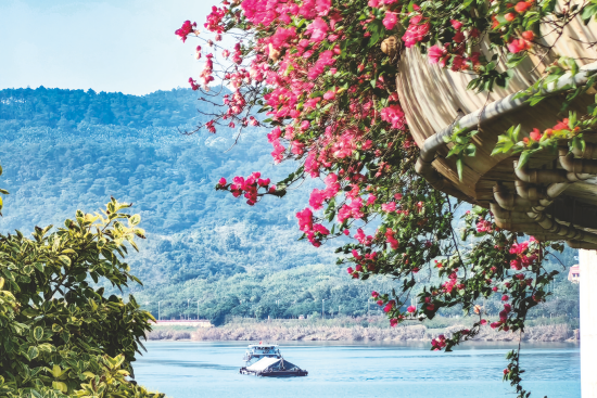 良慶大橋上三角梅熱情綻放,與在江上行駛的船只構(gòu)成一幅美麗的畫卷。記者 葉子榕 攝