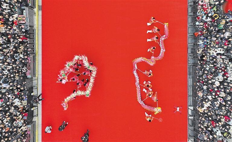 2月2日,江蘇省南通市崇川區(qū)南大街,“金蛇獻瑞樂通城”南通新春民俗巡游精彩上演。民俗巡游活動采取歌、舞、樂的表演形式,由10個南通民俗方陣和2個特邀方陣組成,以大眾喜聞樂見的方式,讓市民游客盡享民俗文化盛宴。許叢軍 攝(中經視覺)
