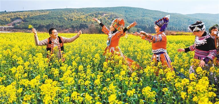 2月15日,云南曲靖市師宗縣扯寨村,油菜花漸次開(kāi)放,吸引游客前來(lái)踏青游玩。孫文來(lái) 攝(中經(jīng)視覺(jué))
