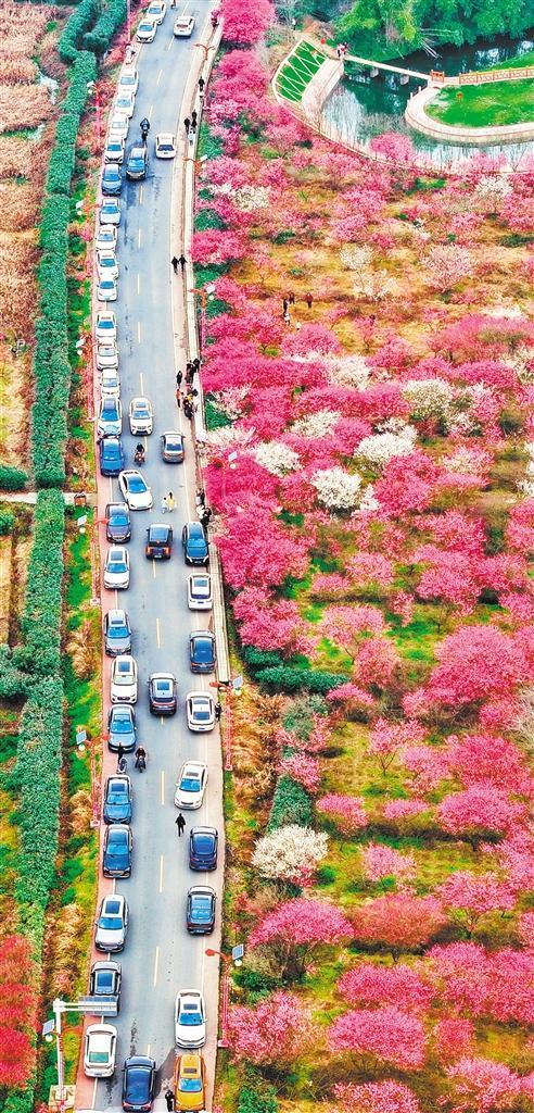 2月16日,江西吉安市永豐縣恩江濕地公園,櫻花競(jìng)相綻放。劉浩軍 攝(中經(jīng)視覺(jué))