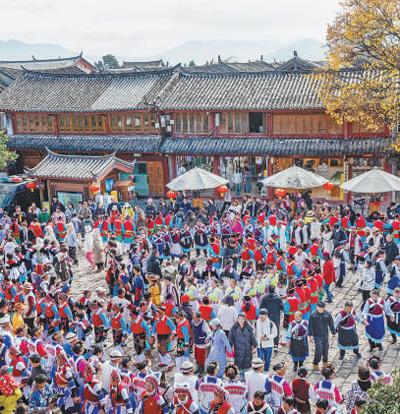 麗江古城涵蓋了作為茶馬古道重鎮(zhèn)的大研古城、從農(nóng)耕文明向商業(yè)文明過渡的“活標本”束河古鎮(zhèn)、有著原生態(tài)納西村落的白沙古鎮(zhèn),融匯了漢族、白族、彝族、藏族、納西族等多民族文化特色。作為一座沒有城墻的古城,麗江古城以包容與開放的姿態(tài),歷經(jīng)文化的交融與碰撞,源源不斷地孕育出充滿魅力的文化新形態(tài)。