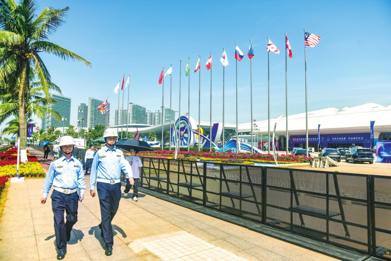 “從4月10日開始,秀英分局就著手清理海南國際會展中心周邊的廣告牌、路面污染和車輛亂停放現(xiàn)象。在4月13日展會開始前,全部清理完畢?!笔芯C合行政執(zhí)法局秀英分局城市管理行政執(zhí)法大隊大隊長廖忠科介紹說,該局通過制定保障工作方案、召開部署會,安排園區(qū)大隊、農(nóng)業(yè)大隊、應(yīng)急大隊負責展會核心區(qū)域的執(zhí)法保障,城市管理大隊作為機動力量,鎮(zhèn)街中隊負責展區(qū)外的屬地常態(tài)化管理。執(zhí)法人員通過駐點、步巡和車巡的方式,巡控會展中心周邊,處置突發(fā)情況。