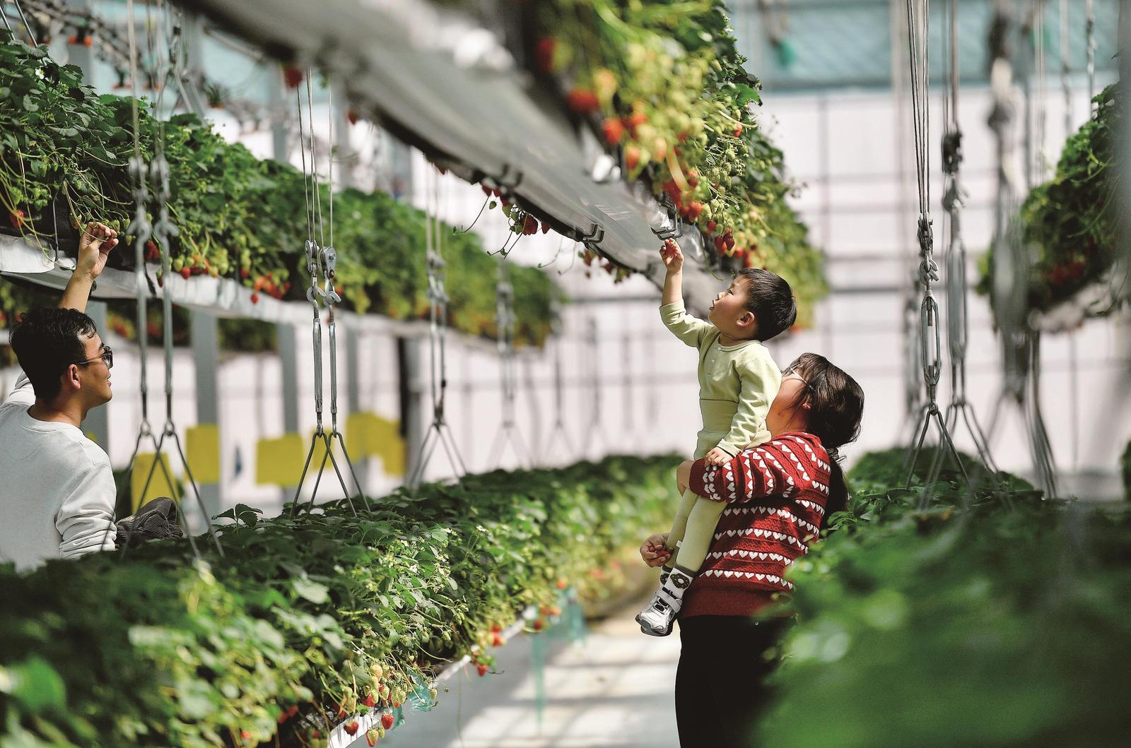 市民在賀蘭縣天榮草莓種植基地采摘草莓(4月6日攝)。 記者 李靖 攝