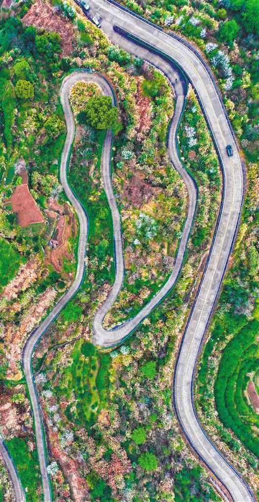 3月30日拍攝的浙江臺(tái)州市三門縣亭旁鎮(zhèn)至橫渡鎮(zhèn)枧頭盤山公路。該縣已實(shí)現(xiàn)“村村通公路、村村通公交”。林利軍攝(中經(jīng)視覺)